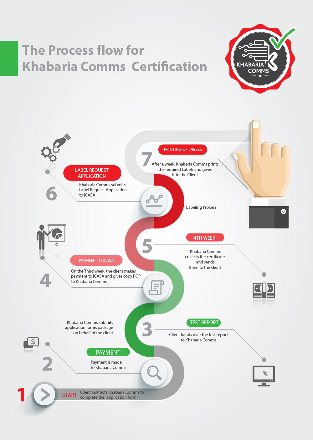 Based on the evaluation of the test results, ICASA will either pass or fail the Equipment Application. Khabaria Communications will screen your application before submitting to the Regulator.